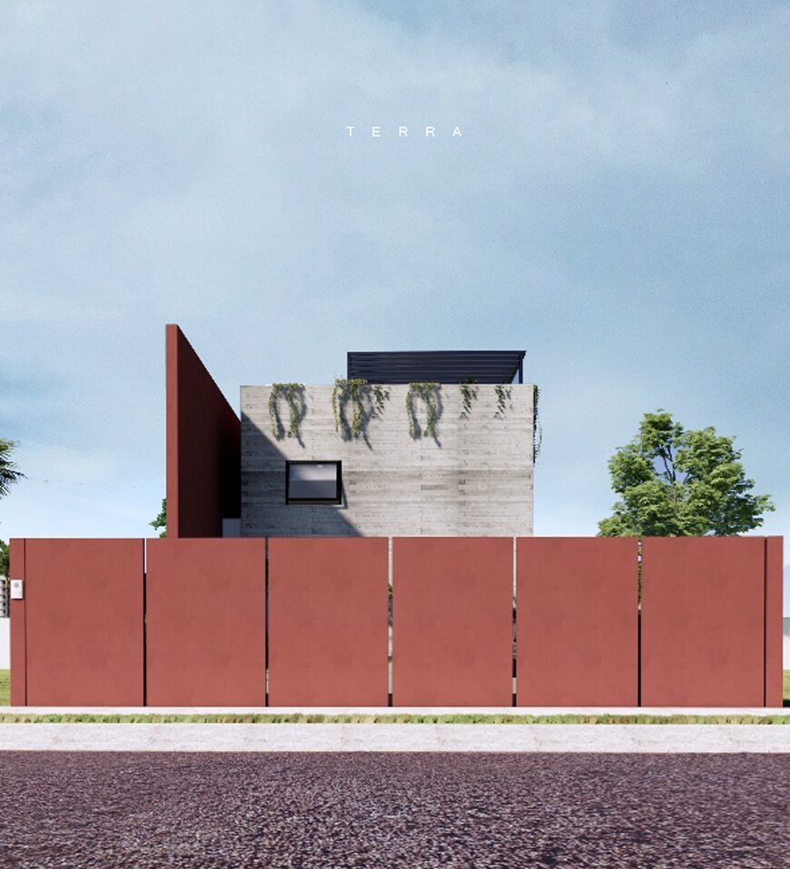 Ubicada en una pequeña loma, CASA TERRA, emerge desde la tierra con un diseño simple de una casa para descanso, aprovechando la vista que apenas asoma hacia la bahía, formas sencillas y colores rojizos emplazan en el lugar de manera armónica.
